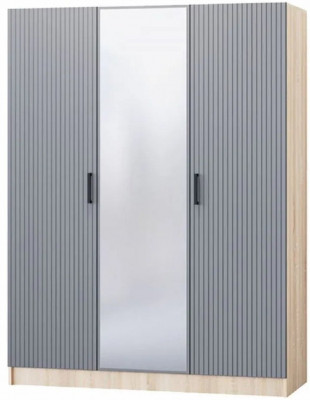 Карина-6 МДФ Шкаф 3 дверный с зеркалом (Графит, Дуб Сонома)